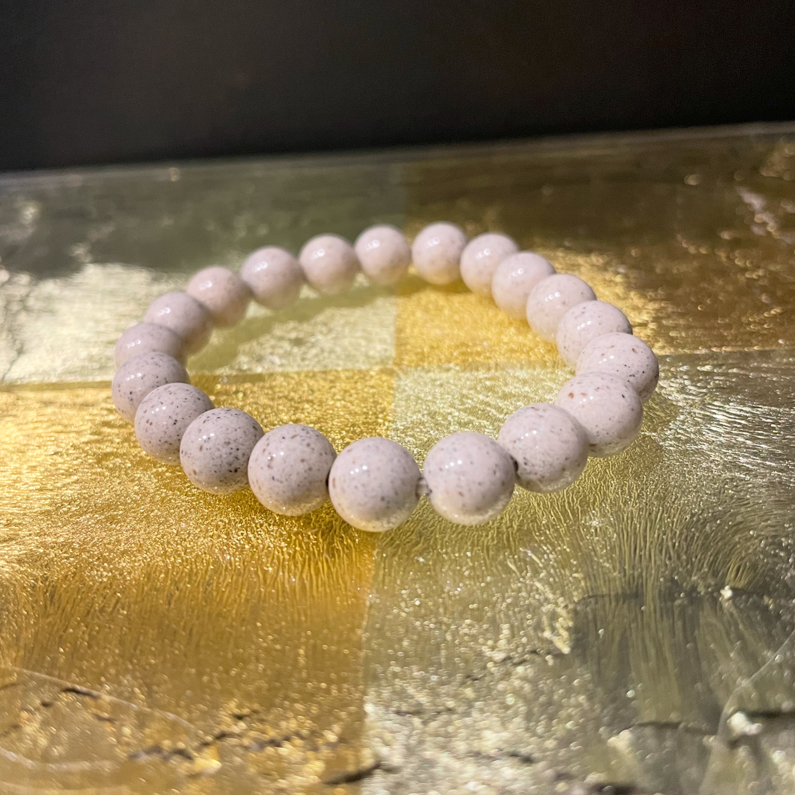 希少な薬石「北投石」に中野アライブセラピーの新井先生が縦波の氣を注入したブレスレットです。