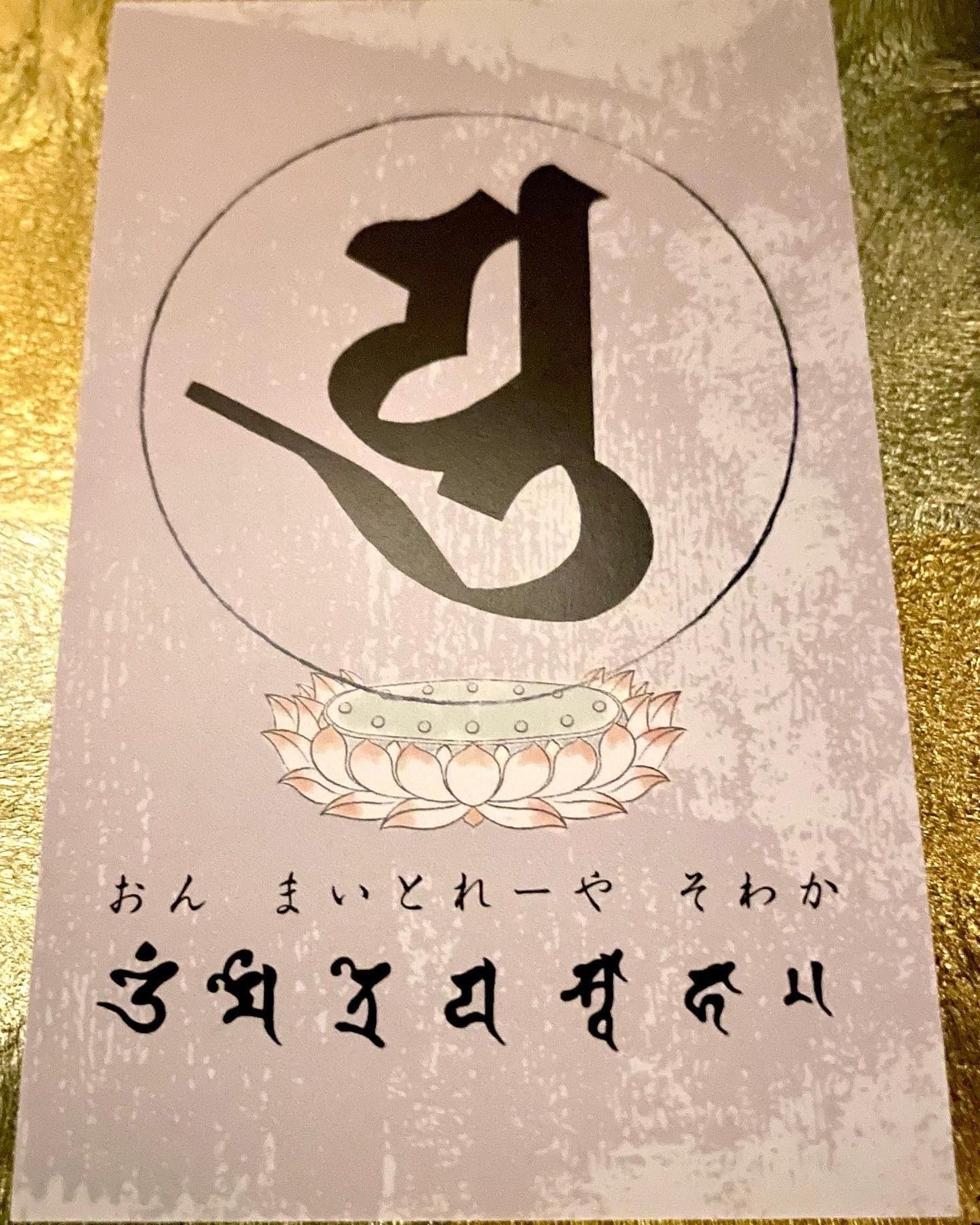 布袋のカードの裏側には、布袋の本地である弥勒菩薩の梵字と真言が入っています。
